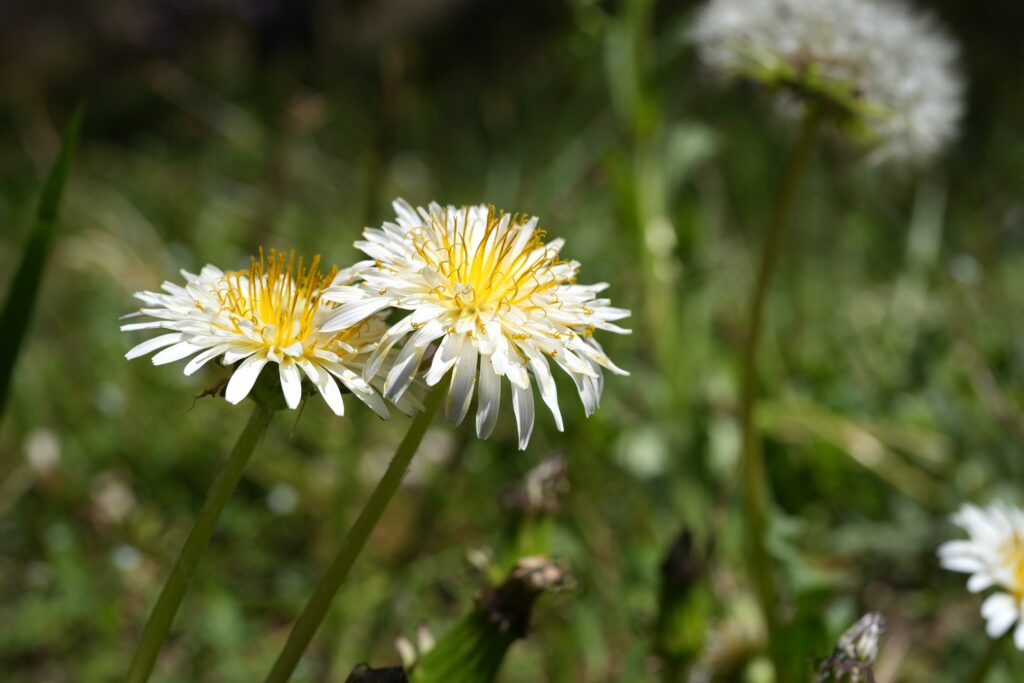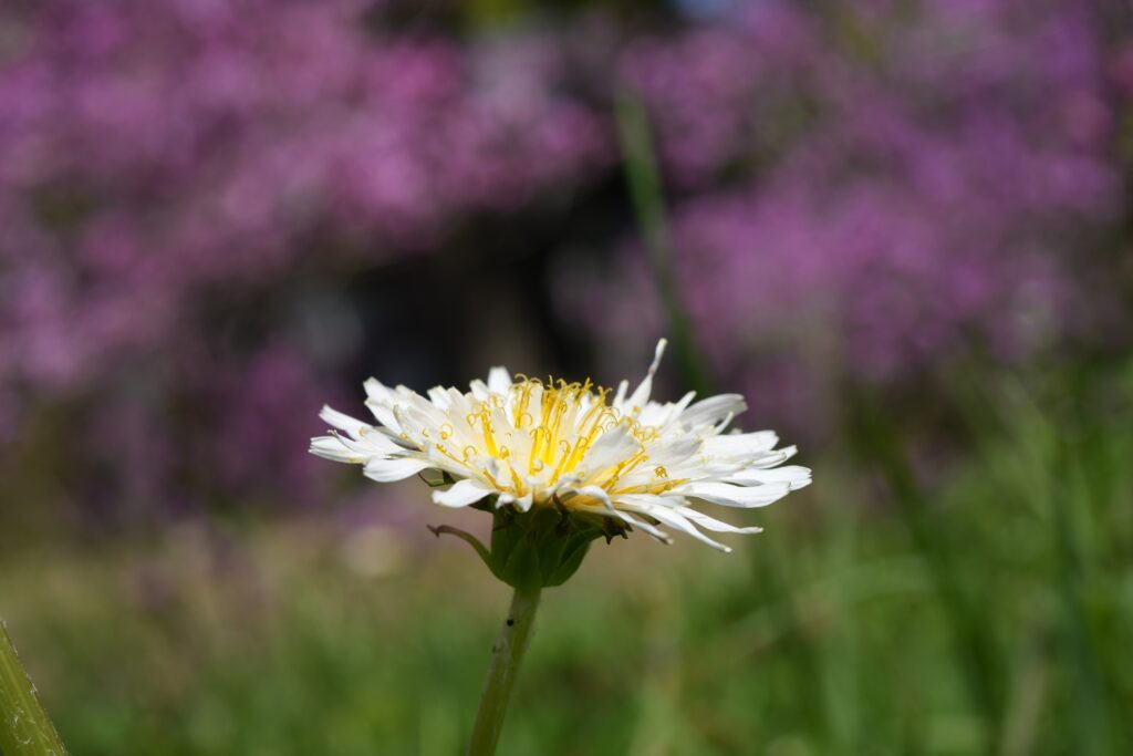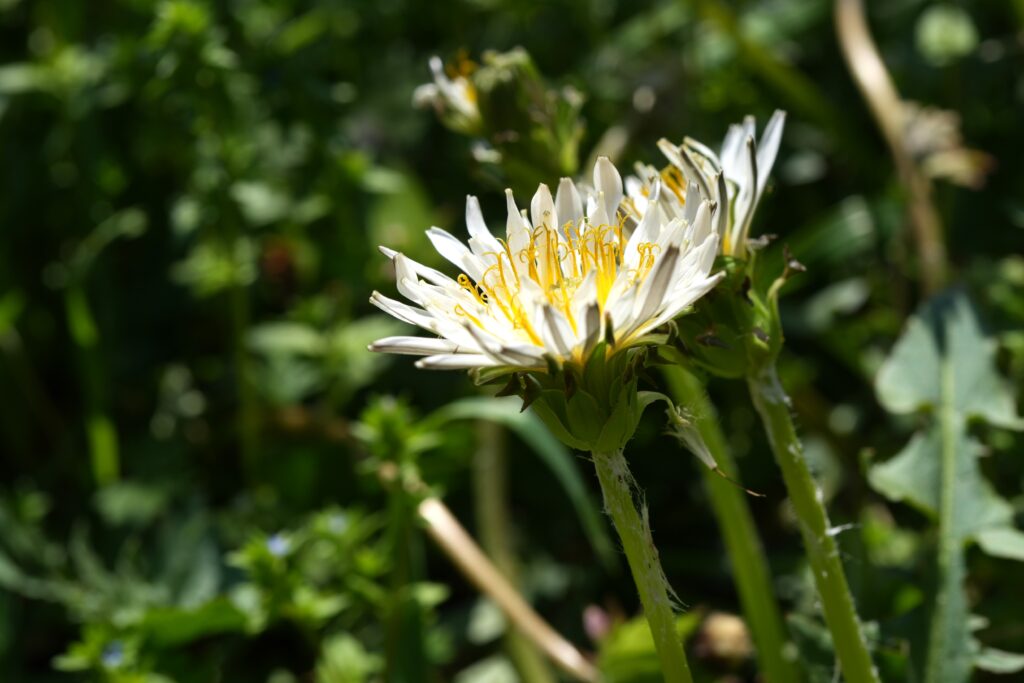 あと「おおっ!」と思ったのがシロバナタンポポがたくさん咲いていたことです。街中では帰化植物のセイヨウタンポポばかり目にしますが、シロバナタンポポは日本在来種です。めったに見れないシロバナタンポポに他の人たちも興味津々で写真撮っていました。
