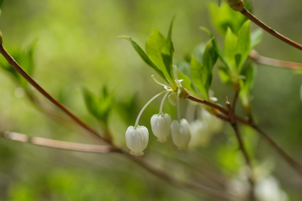他にはドウダンツツジが咲いていました。ツツジ科ドウダンツツジ属の落葉低木です。全然お花の見た目が違いますが、これもツツジ科なんですね。コロンとした壺形のお花がカワイイです。