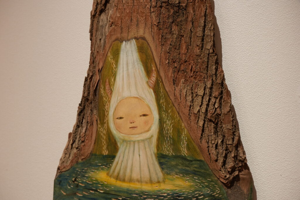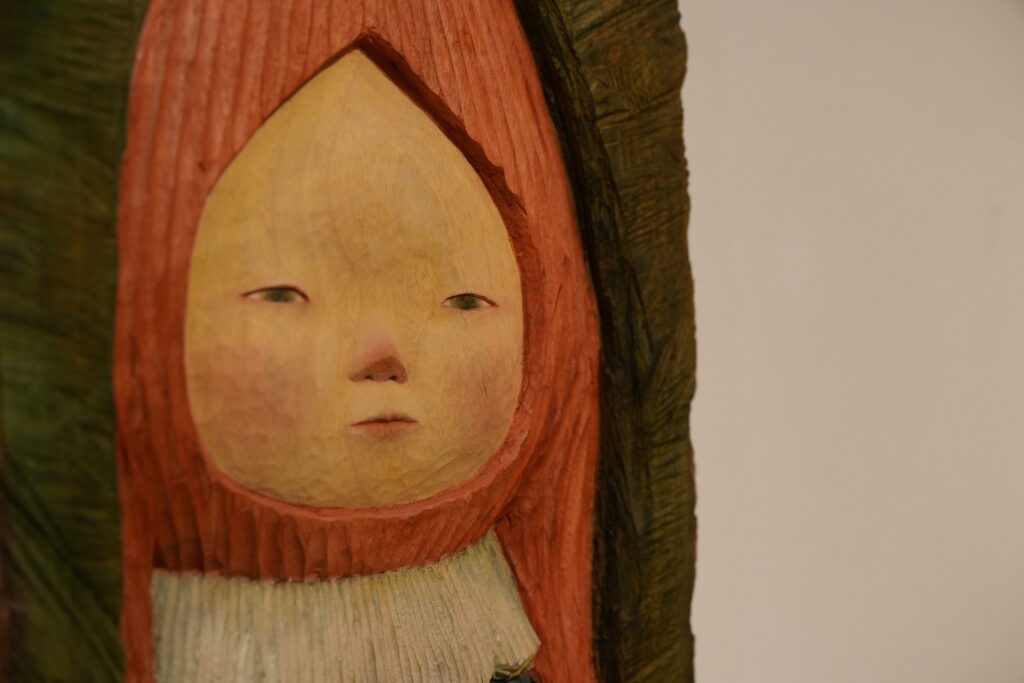 お土産屋さんの「ショップ アルピコラ」の奥の部屋には中村萌さんの「SilentJourney」が展示されています。写真は一部ですが、とても愛らしい木彫りの作品が数点あります。どれもなんとも言えない表情ですが、作者さんの作品に対する温かみが感じられます。